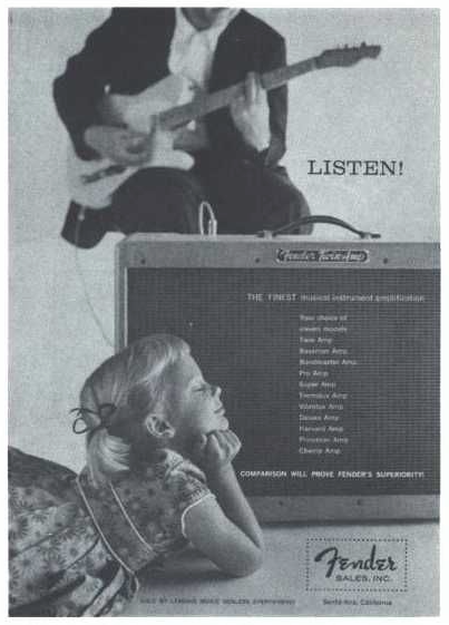 50’s Fender Twin advertisement. Known as “Little Deaf Girl” Ad