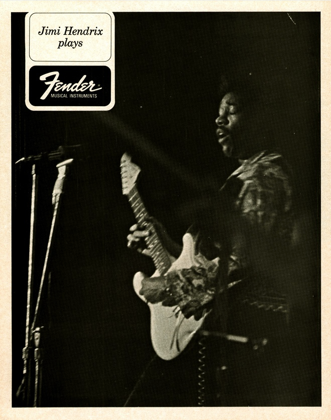 ‘Jimi Hendrix Plays Fender Musical Instruments’ is all you need to say. Fender Ad from 1968