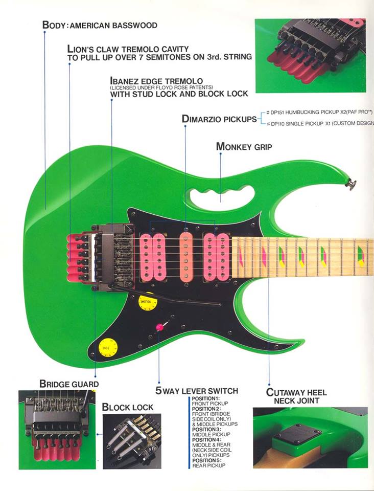 Steve Vai presents the Ibanez Jem 777 in the 1987 edition Ibanez guitar catalog.