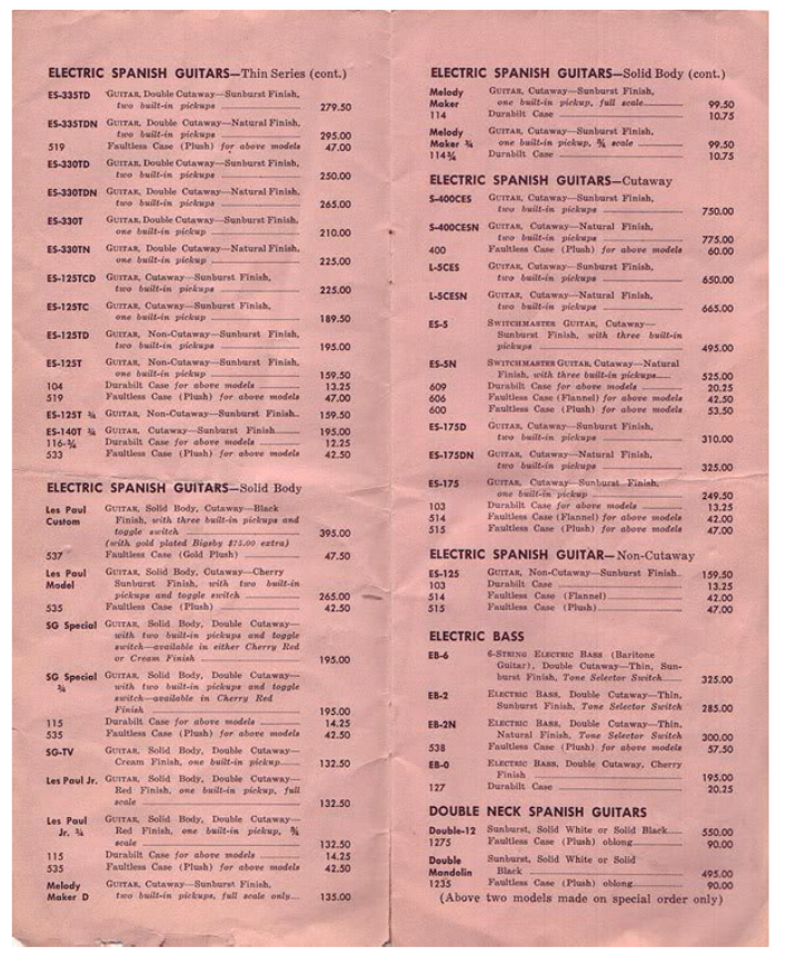 Gibson Price List from 1959